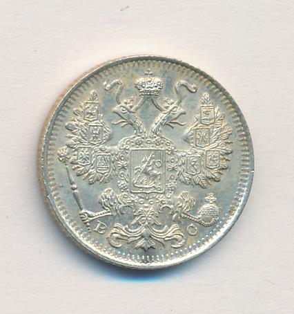 Лицевая сторона — гербовый орел, оборотная —обозначение номинала (15 копеекъ), окруженное венком из лавровой и дубовой ветвей и дата.