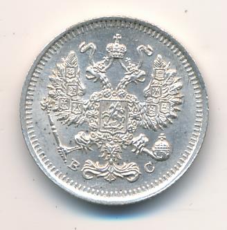Лицевая сторона — гербовый орел, оборотная —обозначение номинала (10 копеекъ), окруженное венком из лавровой и дубовой ветвей и дата.