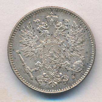Лицевая сторона — российский двуглавый орел с гербом Великого княжества Финляндского на груди, оборотная — номинал и дата в венке из дубовых листьев. Проба — 750, нормативный вес — 2,55 грамма, гурт рубчатый.