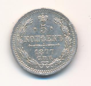 Лицевая сторона — гербовый орел, оборотная —обозначение номинала (5 копеекъ), окруженное венком из лавровой и дубовой ветвей и дата.