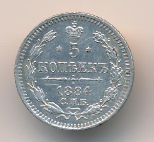 Лицевая сторона — гербовый орел, оборотная —обозначение номинала (5 копеекъ), окруженное венком из лавровой и дубовой ветвей и дата.
