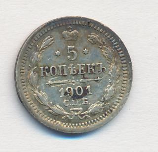 Лицевая сторона — гербовый орел, оборотная —обозначение номинала (5 копеекъ), окруженное венком из лавровой и дубовой ветвей и дата.