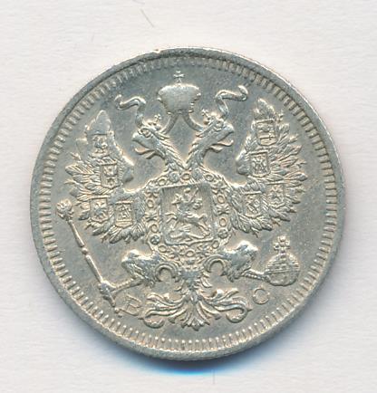 Лицевая сторона — гербовый орел, оборотная —обозначение номинала (20 копеекъ), окруженное венком из лавровой и дубовой ветвей и дата.