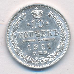 Лицевая сторона — гербовый орел, оборотная —обозначение номинала (10 копеекъ), окруженное венком из лавровой и дубовой ветвей и дата.