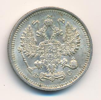 Лицевая сторона — гербовый орел, оборотная —обозначение номинала (10 копеекъ), окруженное венком из лавровой и дубовой ветвей и дата.
