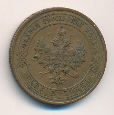 Лицевая сторона — двуглавый орел, надпись МЕДНАЯ РОССIЙСКАЯ МОНЕТА и обозначение номинала (одна копейка); оборотная — обозначение номинала (1 копейка) в бусовом ободке и дата. Нормативный вес — 3,28 грамма, гурт рубчатый.