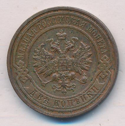 Лицевая сторона — двуглавый орел, надпись МЕДНАЯ РОССIЙСКАЯ МОНЕТА и обозначение номинала (две копейки); оборотная — обозначение номинала (2 копейки) в бусовом ободке и дата. Нормативный вес — 6,55 грамма, гурт рубчатый.