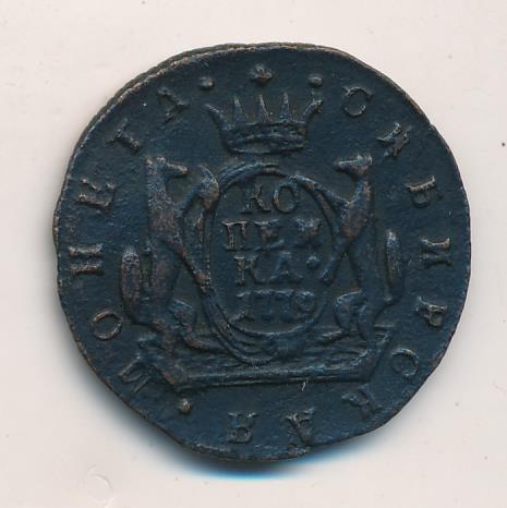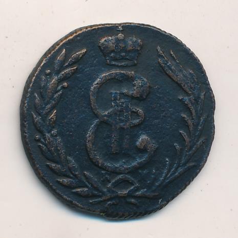 Лицевая сторона - два соболя поддерживают щит с обозначением номинала (копейка) под короной, надпись «СИБИРСКАЯ МОНЕТА». Оборотная — вензель Екатерины II в венке из пальмовой и лавровой ветвей. Гурт — шнур, вес — 6,55 грамма.