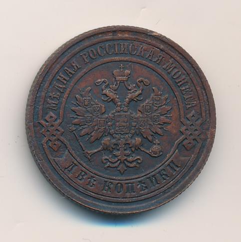 Лицевая сторона — двуглавый орел, надпись МЕДНАЯ РОССIЙСКАЯ МОНЕТА и обозначение номинала (две копейки); оборотная — обозначение номинала (2 копейки) в бусовом ободке и дата. Нормативный вес — 6,55 грамма, гурт рубчатый.