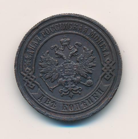 Лицевая сторона — двуглавый орел, надпись МЕДНАЯ РОССIЙСКАЯ МОНЕТА и обозначение номинала (две копейки); оборотная — обозначение номинала (2 копейки) в бусовом ободке и дата. Нормативный вес — 6,55 грамма, гурт рубчатый.