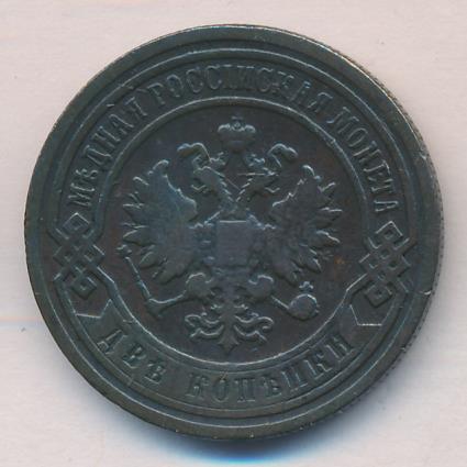 Лицевая сторона — двуглавый орел, надпись МЕДНАЯ РОССIЙСКАЯ МОНЕТА и обозначение номинала (две копейки); оборотная — обозначение номинала (2 копейки) в бусовом ободке и дата. Нормативный вес — 6,55 грамма, гурт рубчатый.