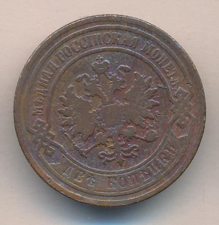 Лицевая сторона — двуглавый орел, надпись МЕДНАЯ РОССIЙСКАЯ МОНЕТА и обозначение номинала (две копейки); оборотная — обозначение номинала (2 копейки) в бусовом ободке и дата. Нормативный вес — 6,55 грамма, гурт рубчатый.