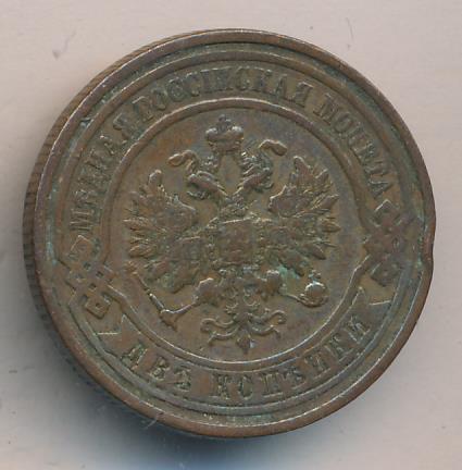 Лицевая сторона — двуглавый орел, надпись МЕДНАЯ РОССIЙСКАЯ МОНЕТА и обозначение номинала (две копейки); оборотная — обозначение номинала (2 копейки) в бусовом ободке и дата. Нормативный вес — 6,55 грамма, гурт рубчатый.