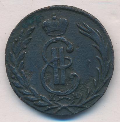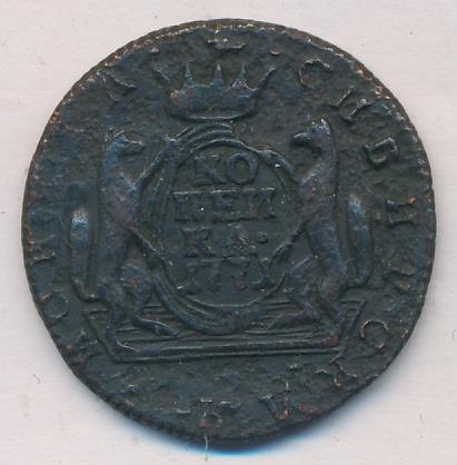Лицевая сторона - два соболя поддерживают щит с обозначением номинала (копейка) под короной, надпись «СИБИРСКАЯ МОНЕТА». Оборотная — вензель Екатерины II в венке из пальмовой и лавровой ветвей. Гурт — шнур, вес — 6,55 грамма.