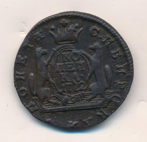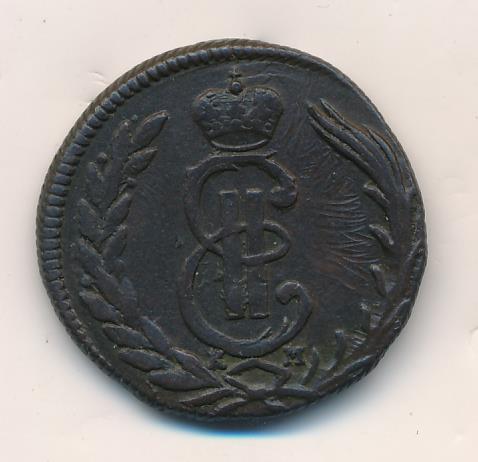 Лицевая сторона - два соболя поддерживают щит с обозначением номинала (копейка) под короной, надпись «СИБИРСКАЯ МОНЕТА». Оборотная — вензель Екатерины II в венке из пальмовой и лавровой ветвей. Гурт — шнур, вес — 6,55 грамма.