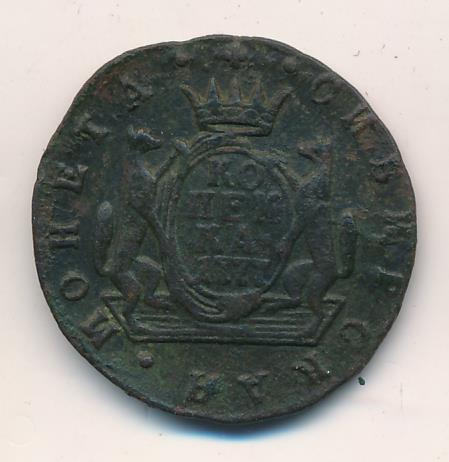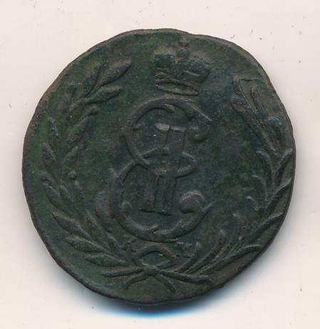 Лицевая сторона - два соболя поддерживают щит с обозначением номинала (копейка) под короной, надпись «СИБИРСКАЯ МОНЕТА». Оборотная — вензель Екатерины II в венке из пальмовой и лавровой ветвей. Гурт — шнур, вес — 6,55 грамма.