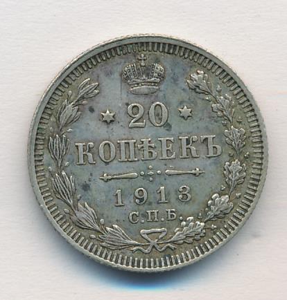 Лицевая сторона — гербовый орел, оборотная —обозначение номинала (20 копеекъ), окруженное венком из лавровой и дубовой ветвей и дата.