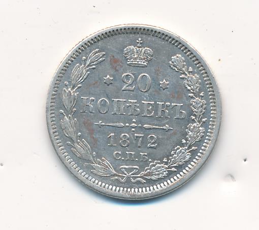 Лицевая сторона — гербовый орел, оборотная —обозначение номинала (20 копеекъ), окруженное венком из лавровой и дубовой ветвей и дата.
