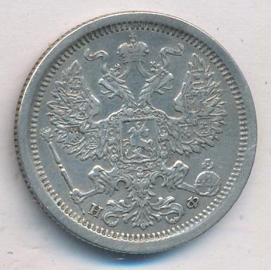 Лицевая сторона — гербовый орел, оборотная —обозначение номинала (20 копеекъ), окруженное венком из лавровой и дубовой ветвей и дата.