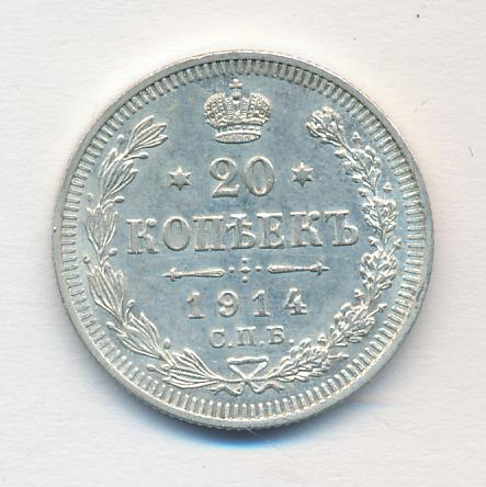 Лицевая сторона — гербовый орел, оборотная —обозначение номинала (20 копеекъ), окруженное венком из лавровой и дубовой ветвей и дата.