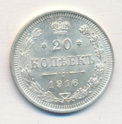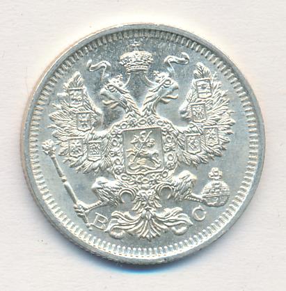 Лицевая сторона — гербовый орел, оборотная —обозначение номинала (20 копеекъ), окруженное венком из лавровой и дубовой ветвей и дата.