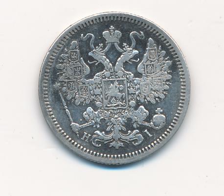 Лицевая сторона — гербовый орел, оборотная —обозначение номинала (15 копеекъ), окруженное венком из лавровой и дубовой ветвей и дата.