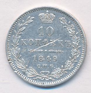 Лицевая сторона — новый гербовый орел с поднятыми крыльями, оборотная —обозначение номинала (10 копеекъ), окруженное венком из лавровой и дубовой ветвей и дата. Проба — 868, нормативный вес — 2,07 грамма.