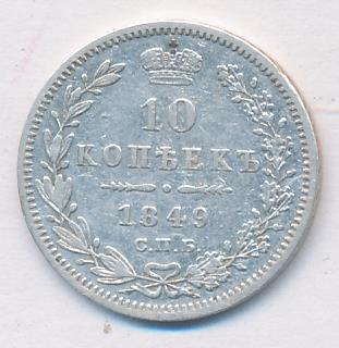 Лицевая сторона — новый гербовый орел с поднятыми крыльями, оборотная —обозначение номинала (10 копеекъ), окруженное венком из лавровой и дубовой ветвей и дата. Проба — 868, нормативный вес — 2,07 грамма.