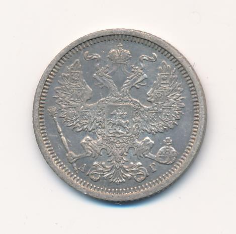 Лицевая сторона — гербовый орел, оборотная —обозначение номинала (20 копеекъ), окруженное венком из лавровой и дубовой ветвей и дата.