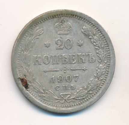 Лицевая сторона — гербовый орел, оборотная —обозначение номинала (20 копеекъ), окруженное венком из лавровой и дубовой ветвей и дата.