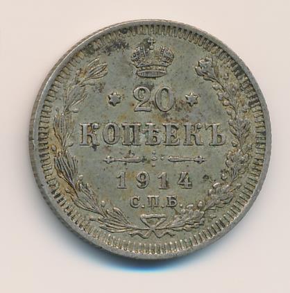 Лицевая сторона — гербовый орел, оборотная —обозначение номинала (20 копеекъ), окруженное венком из лавровой и дубовой ветвей и дата.