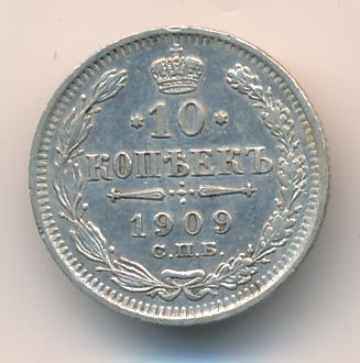 Лицевая сторона — гербовый орел, оборотная —обозначение номинала (10 копеекъ), окруженное венком из лавровой и дубовой ветвей и дата.