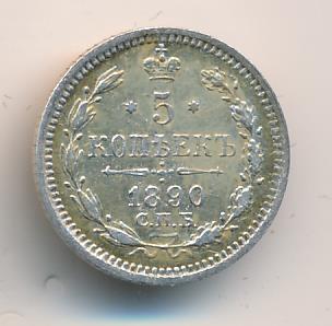 Лицевая сторона — гербовый орел, оборотная —обозначение номинала (5 копеекъ), окруженное венком из лавровой и дубовой ветвей и дата.