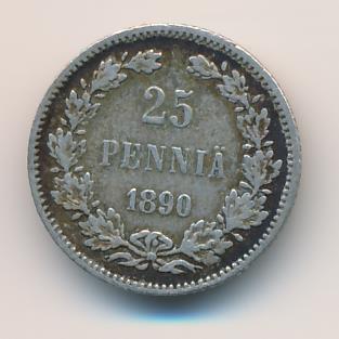 Лицевая сторона — российский двуглавый орел с гербом Великого княжества Финляндского на груди, оборотная — номинал и дата в венке из дубовых листьев. Проба — 750, нормативный вес — 1,27 грамма, гурт рубчатый.
