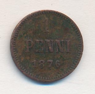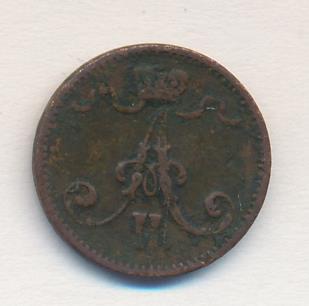 Лицевая сторона — вензель Александра II, оборотная — номинал (1 PENNIA) и дата. Нормативный вес — 1,28 грамма, гурт гладкий.