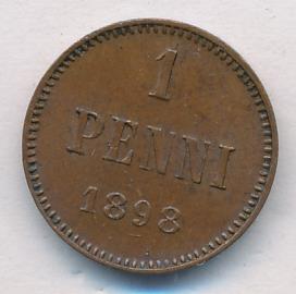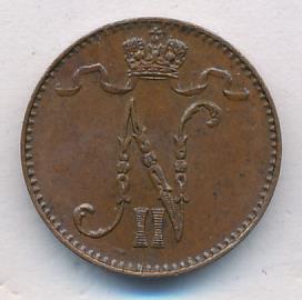 Лицевая сторона — вензель Александра II, оборотная — номинал (1 PENNIA) и дата. Нормативный вес — 1,28 грамма, гурт гладкий.