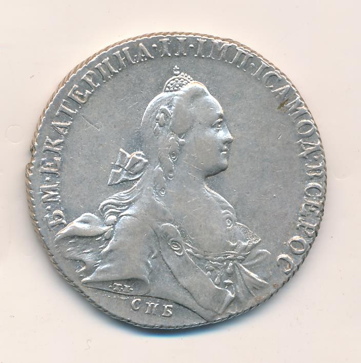 Лицевая сторона — портрет императрицы и надпись «Б М ЕКАТЕРИНА II IМП I САМОД ВСЕРОС», оборотная — двуглавый орел и надпись «МОНЕТА РУБЛЬ» и дата. Проба — 750, нормативный вес — 24 грамма, гурт — шнур.