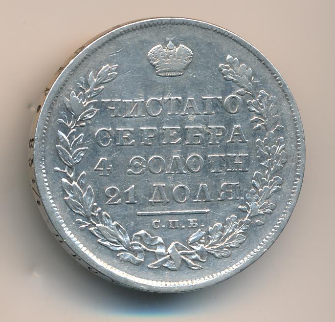 Лицевая сторона - «масонский орел», надпись «МОНЕТА РУБЛЬ» и дата, оборотная - окруженная венком из лавровой и дубовой ветвей надпись «ЧИСТАГО СЕРЕБРА 4 ЗОЛОТН 21 ДОЛЯ». Проба — 868, нормативный вес — 20,73 грамма.