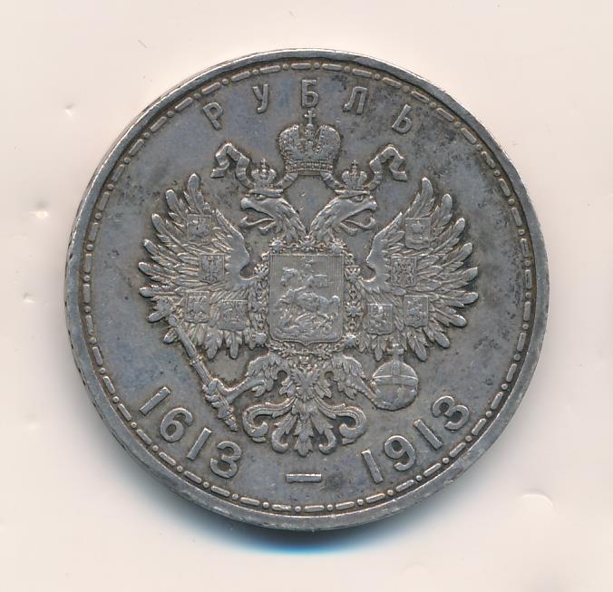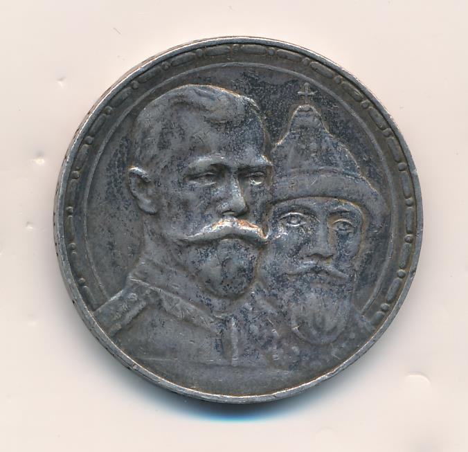 К 300-летию царствования Дома Романовых выпустили и юбилейный рубль, отчеканенный грандиозным тиражом почти в полтора миллиона экземпляров. На лицевой стороне монеты разместили портрет императора Николая II в военной форме, за спиной которого виден основатель династии, царь Михаил Романов в царском одеянии и в шапке Мономаха.