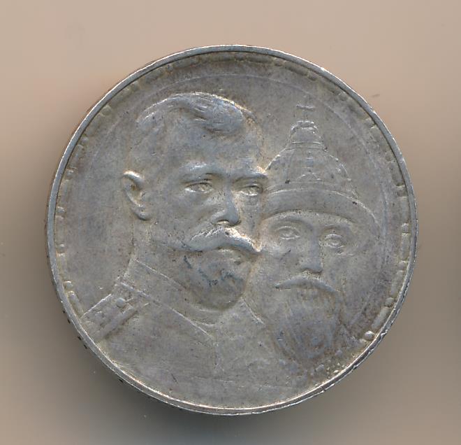 К 300-летию царствования Дома Романовых выпустили и юбилейный рубль, отчеканенный грандиозным тиражом почти в полтора миллиона экземпляров. На лицевой стороне монеты разместили портрет императора Николая II в военной форме, за спиной которого виден основатель династии, царь Михаил Романов в царском одеянии и в шапке Мономаха.