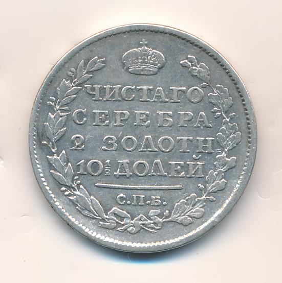 Лицевая сторона - двуглавый орел, дата и надпись «МОНЕТА РУБЛЬ», оборотная — окруженная венком из лавровой и дубовой ветвей надпись «ЧИСТАГО СЕРЕБРА 2 ЗОЛОТН 10 ДОЛЕЙ». Проба — 868, нормативный вес — 10,37 грамма.