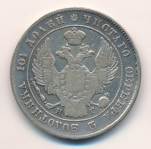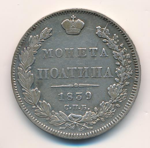 Лицевая сторона — новый гербовый орел с поднятыми крыльями и надпись «ЧИСТОГО СЕРЕБРА 2 ЗОЛОТНИКА 10 ДОЛЕЙ», оборотная — надпись «МОНЕТА ПОЛТИНА», окруженная венком из лавровой и дубовой ветвей и дата.
