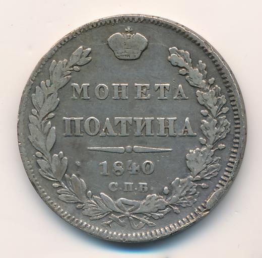 Лицевая сторона — новый гербовый орел с поднятыми крыльями и надпись «ЧИСТОГО СЕРЕБРА 2 ЗОЛОТНИКА 10 ДОЛЕЙ», оборотная — надпись «МОНЕТА ПОЛТИНА», окруженная венком из лавровой и дубовой ветвей и дата.