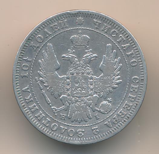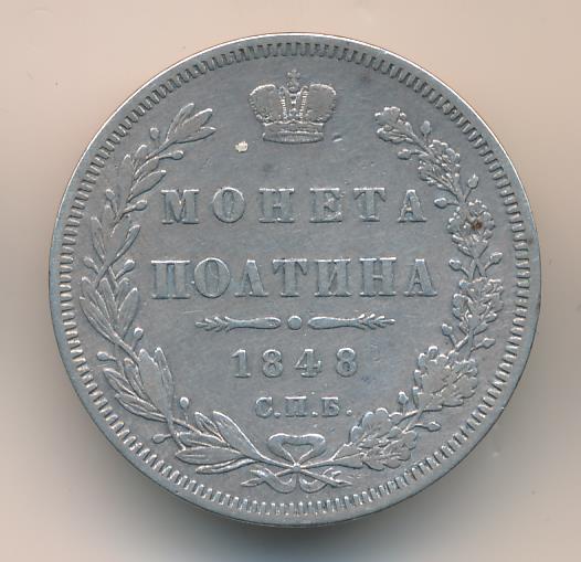Лицевая сторона — новый гербовый орел с поднятыми крыльями и надпись «ЧИСТОГО СЕРЕБРА 2 ЗОЛОТНИКА 10 ДОЛЕЙ», оборотная — надпись «МОНЕТА ПОЛТИНА», окруженная венком из лавровой и дубовой ветвей и дата.