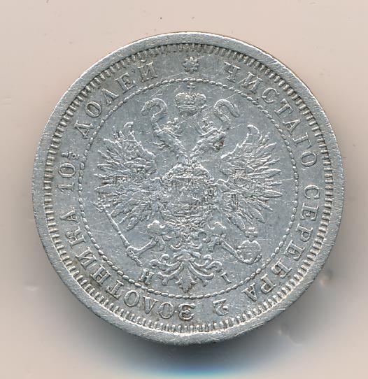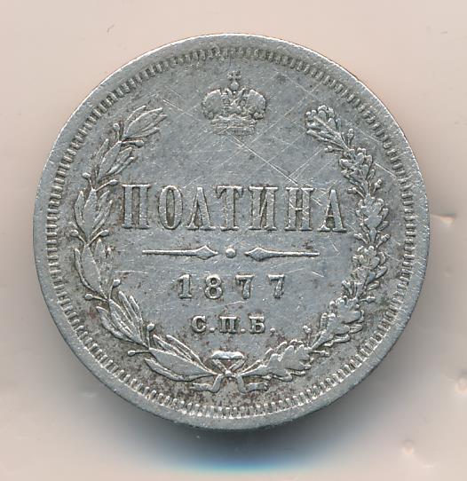 Лицевая сторона — гербовый орел и надпись «ЧИСТОГО СЕРЕБРА 2 ЗОЛОТНИКА 10 ДОЛЕЙ», оборотная — обозначение номинала «ПОЛТИНА», окруженное венком из лавровой и дубовой ветвей и дата.