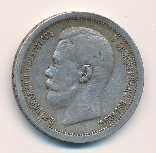 Лицевая сторона — портрет Николая II в круговой надписи «Б.М. НИКОЛАЙ II ИМПЕРАТОРЪ И САМОДЕРЖЕЦЪ ВСЕРОСС», оборотная — двуглавый орел, обозначение номинала (50 копеекъ) и дата.