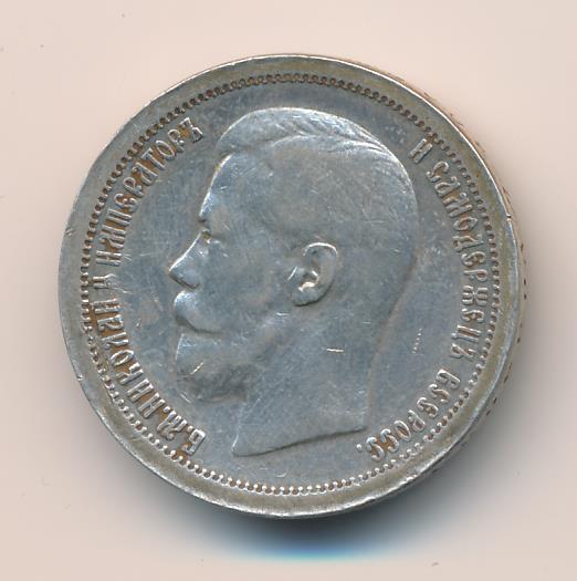 Лицевая сторона — портрет Николая II в круговой надписи «Б.М. НИКОЛАЙ II ИМПЕРАТОРЪ И САМОДЕРЖЕЦЪ ВСЕРОСС», оборотная — двуглавый орел, обозначение номинала (50 копеекъ) и дата.