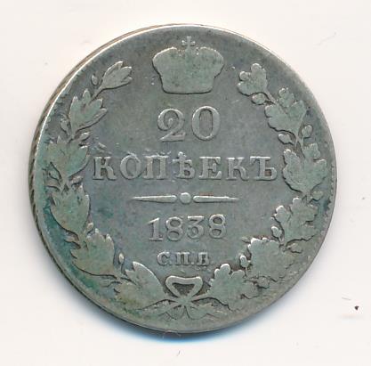 Лицевая сторона — новый гербовый орел с поднятыми крыльями, оборотная —обозначение номинала (20 копеекъ), окруженное венком из лавровой и дубовой ветвей и дата. Проба — 868, нормативный вес — 4,15 грамма.
