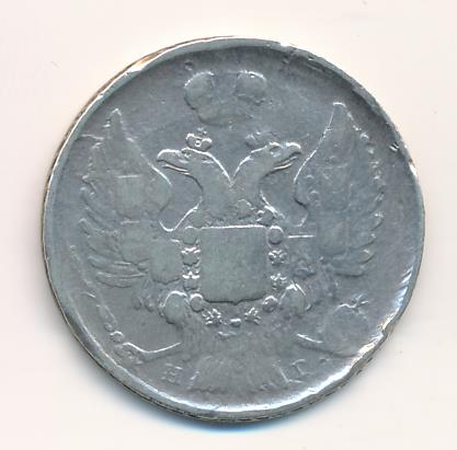 В январе 1830 года Николай I дает министру финансов Е. Ф. Канкрину устное указание «о сделании на золотых и серебряных монетах орла как на платиновых». На новом гербе крылья орла подняты, на них размещены шесть местных гербов — казанский, астраханский, сибирский, польский, херсонесский и финляндский. На груди орла — московский герб, на головах — короны. Выделяют шесть типов орла.