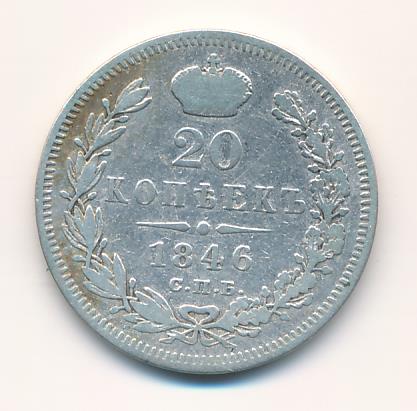 Лицевая сторона — новый гербовый орел с поднятыми крыльями, оборотная —обозначение номинала (20 копеекъ), окруженное венком из лавровой и дубовой ветвей и дата. Проба — 868, нормативный вес — 4,15 грамма.